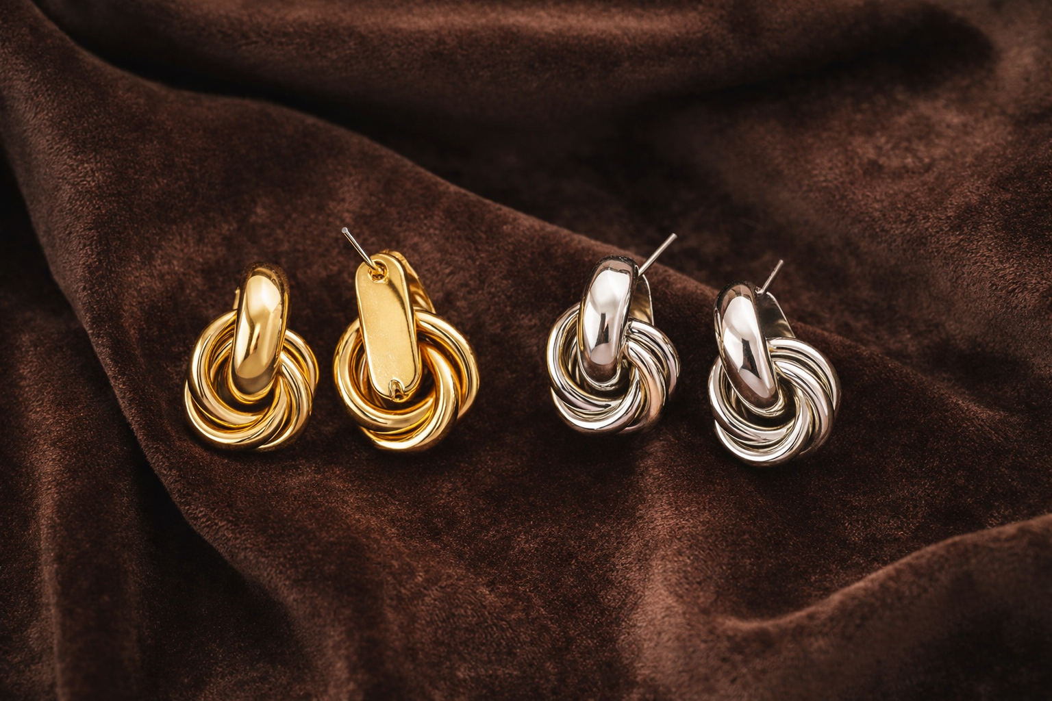 Knot Hoop Earring set- 2-Pair in Gold & Silver