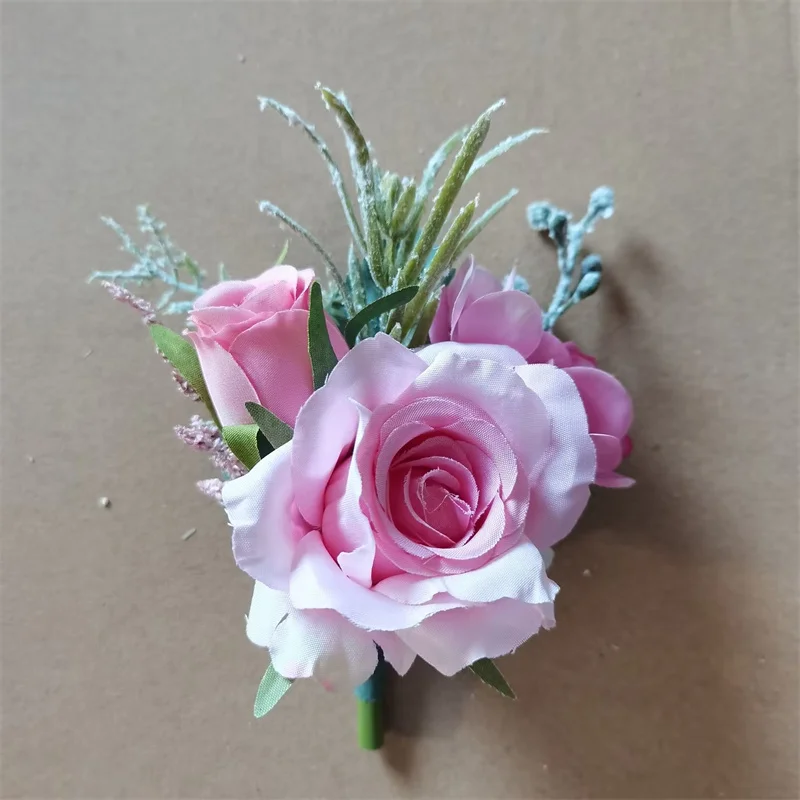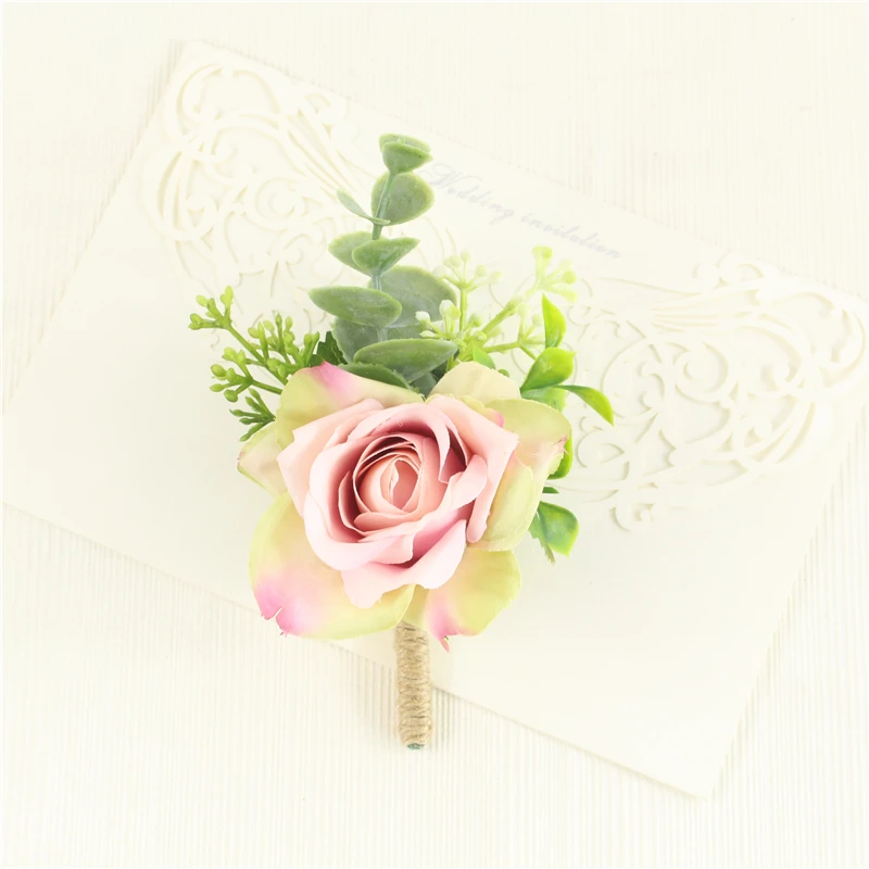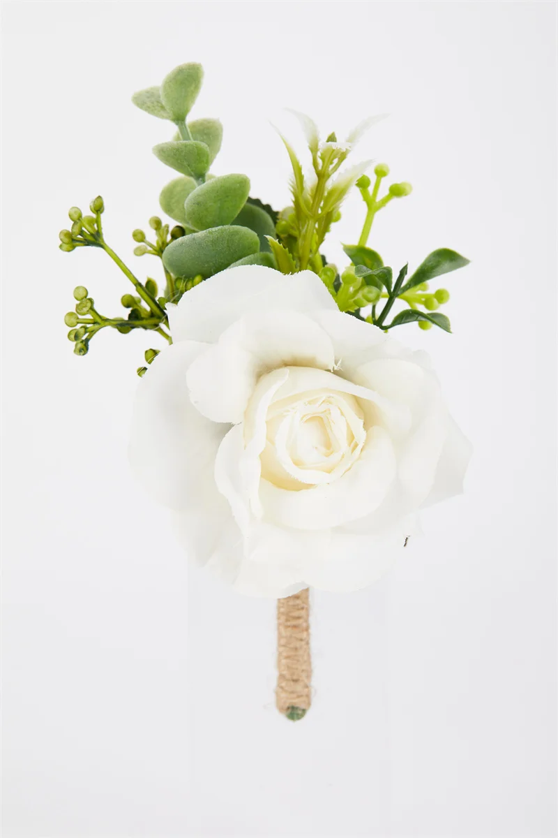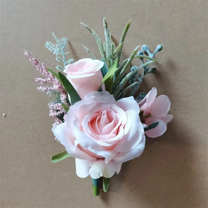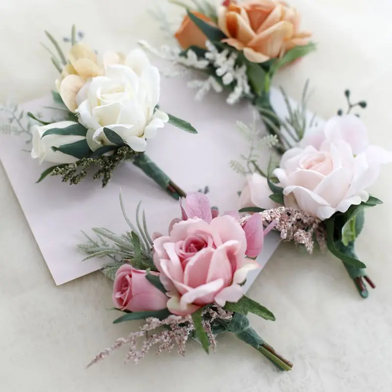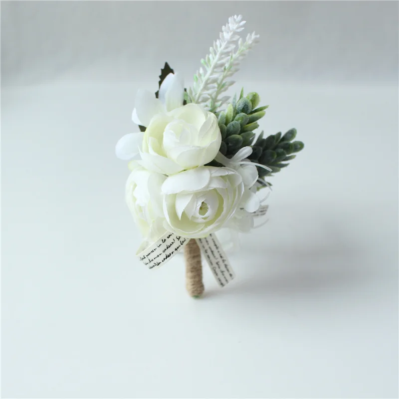 Beige Boutonnieres Flowers Artificial Roses Silk White Corsage Buttonhole Groomsmen Boutonniere for Men Wedding Accessories