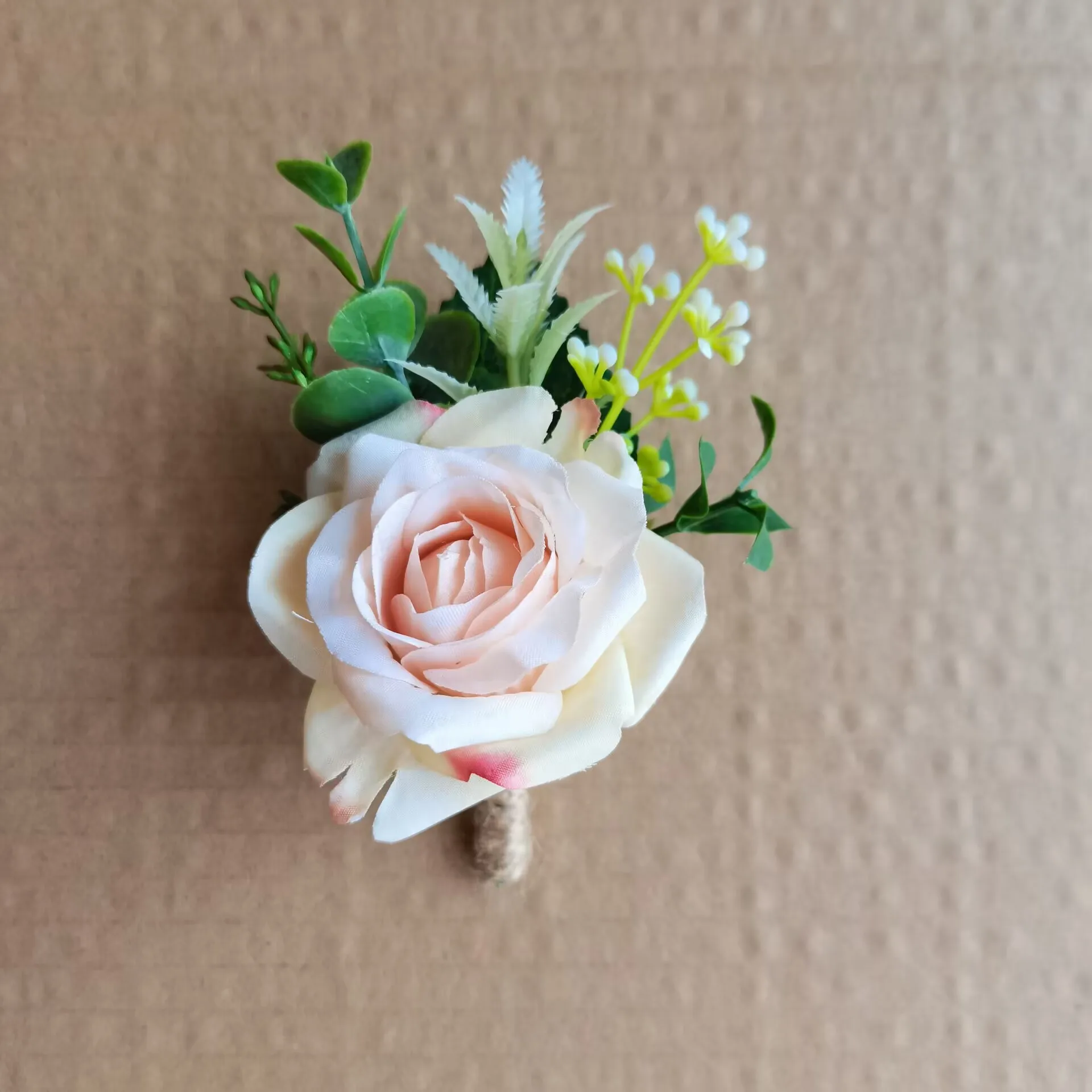 Boutonnieres Flowers Artificial Beige Roses Silk White Corsage Buttonhole Groomsmen Boutonniere for Men Wedding Accessories