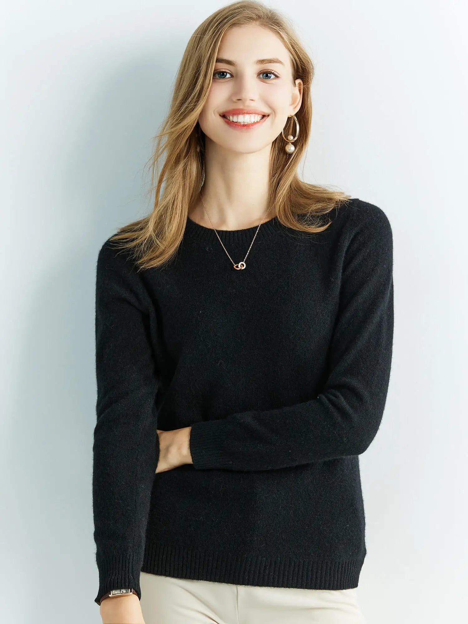 100% Merino Wool Cashmere Sweater – Women’s O-Neck Vintage Knit Pullover | Autumn & Winter Luxury Jumper