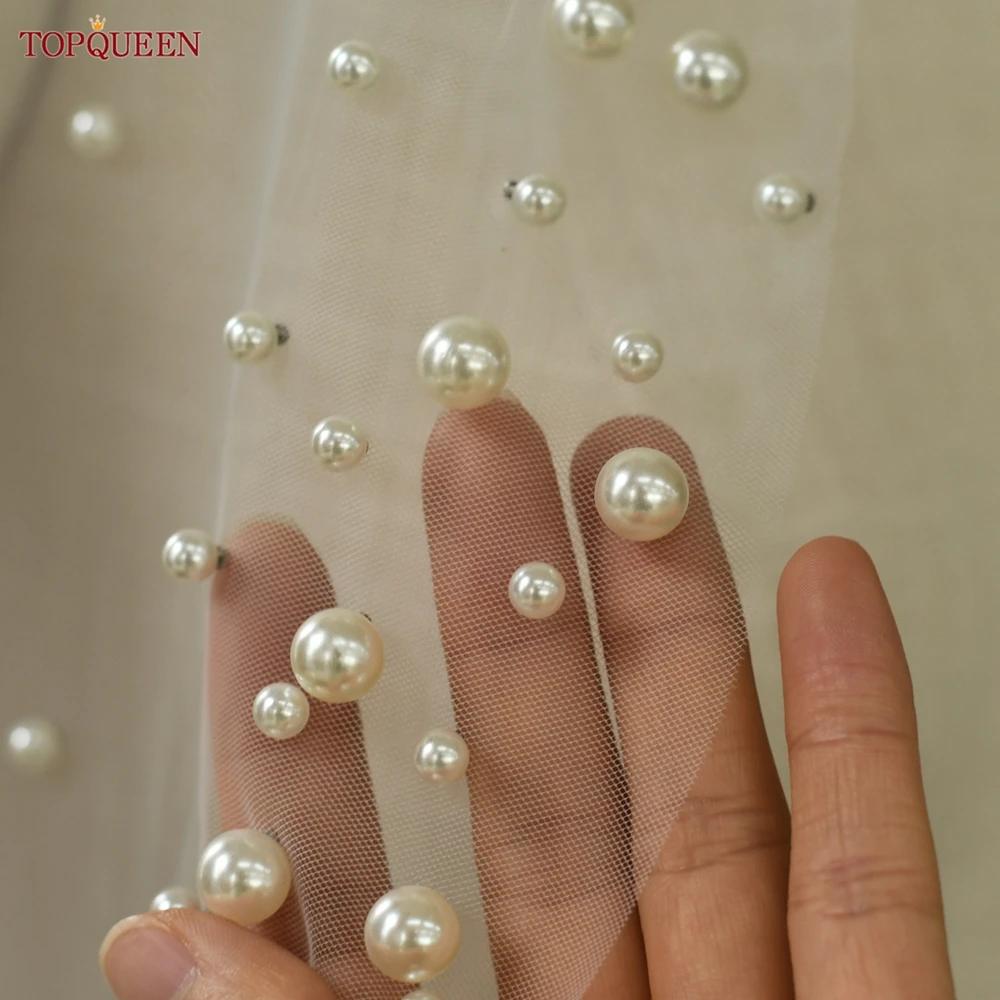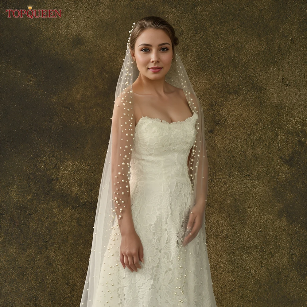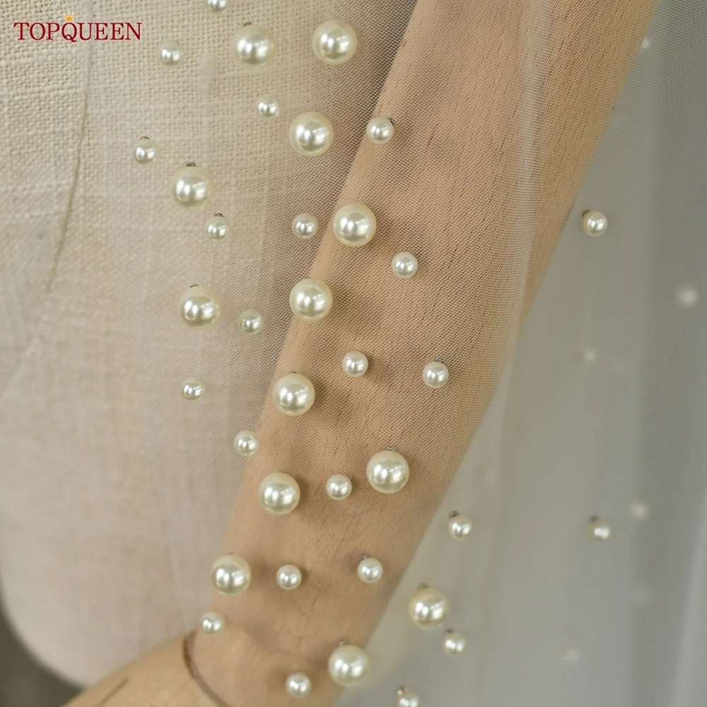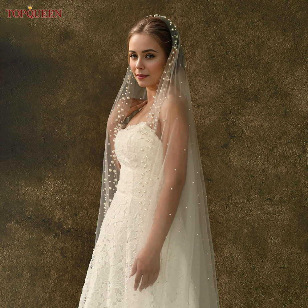 Experience timeless bridal elegance with the TOPQUEEN V66 Luxury Cathedral Pearl Wedding Veil, designed to add a touch of sophistication and grace to your wedding day look.