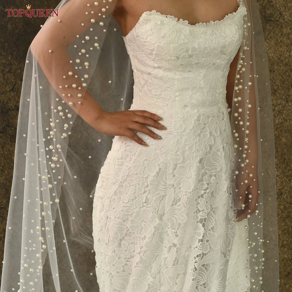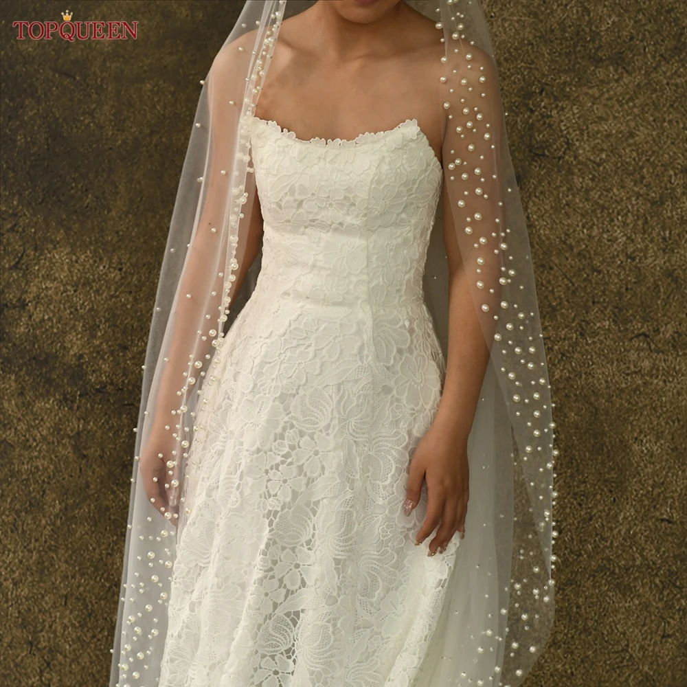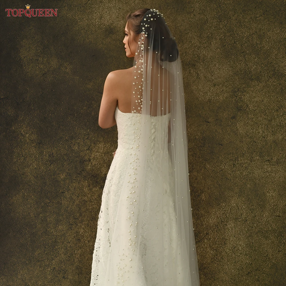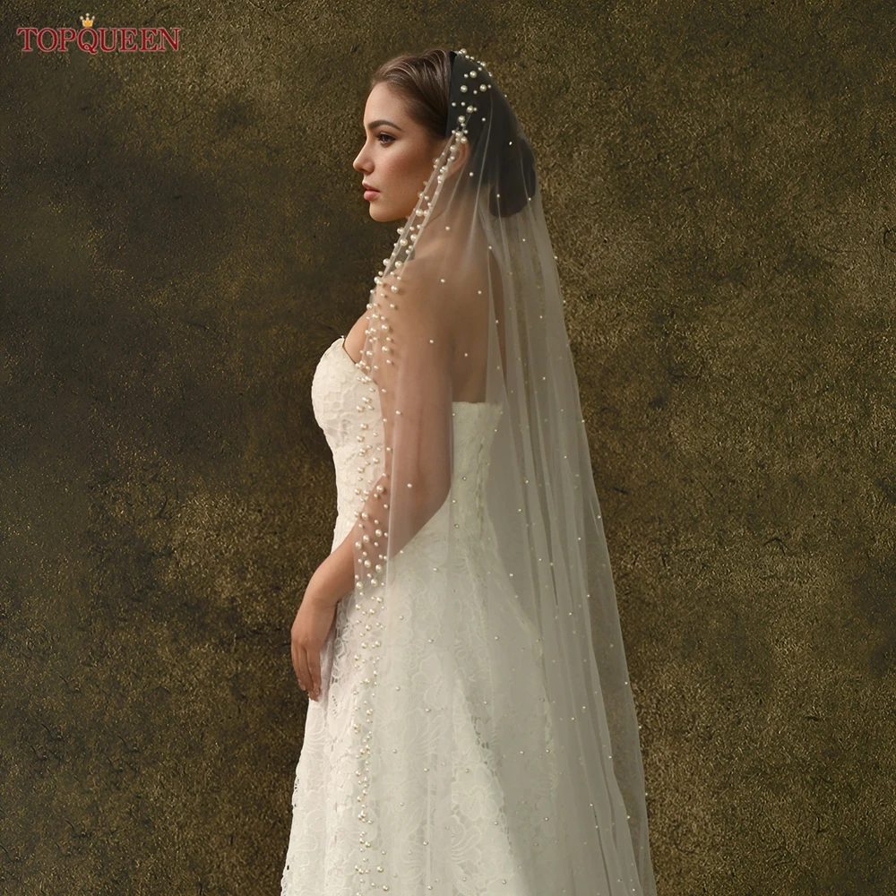 Experience timeless bridal elegance with the TOPQUEEN V66 Luxury Cathedral Pearl Wedding Veil, designed to add a touch of sophistication and grace to your wedding day look.
