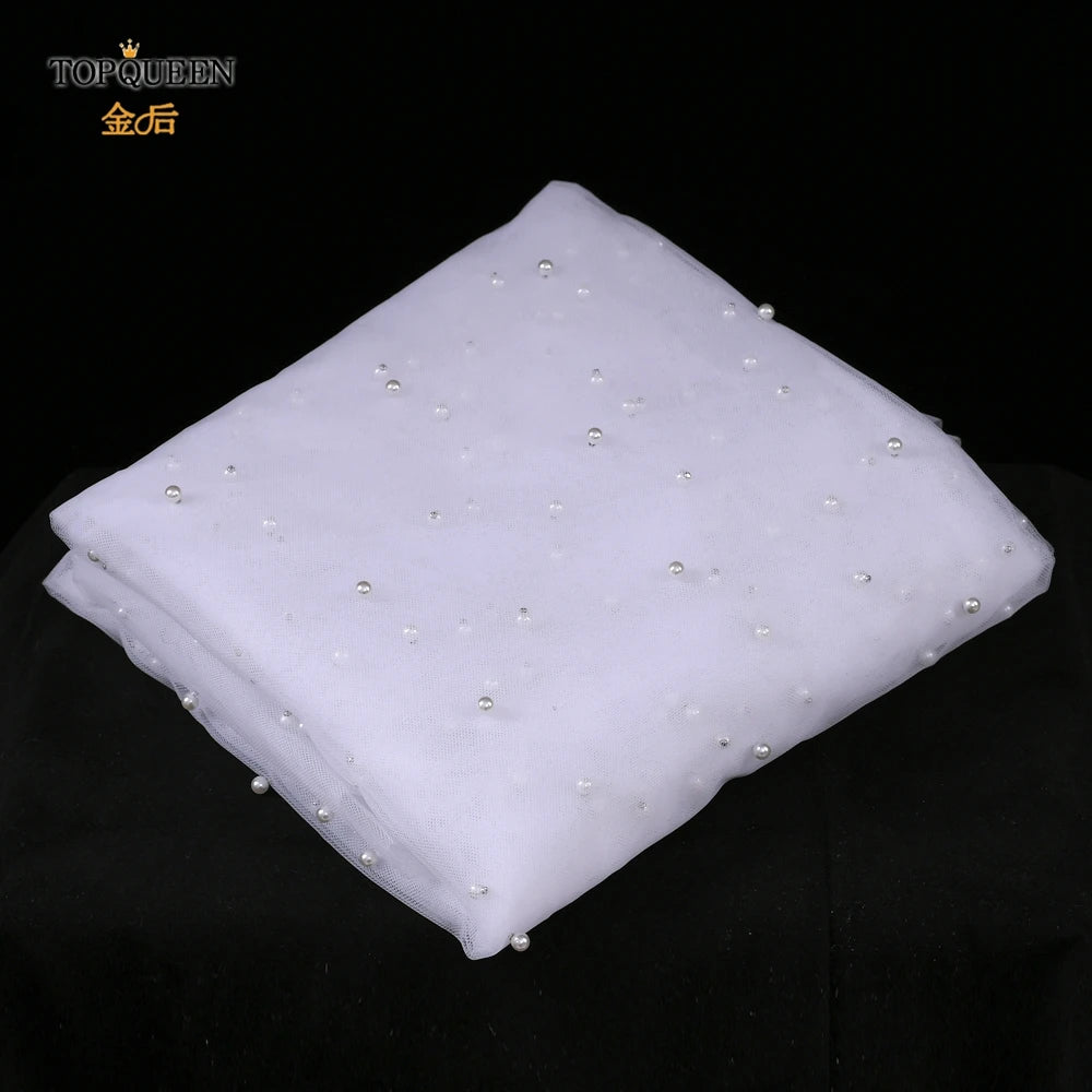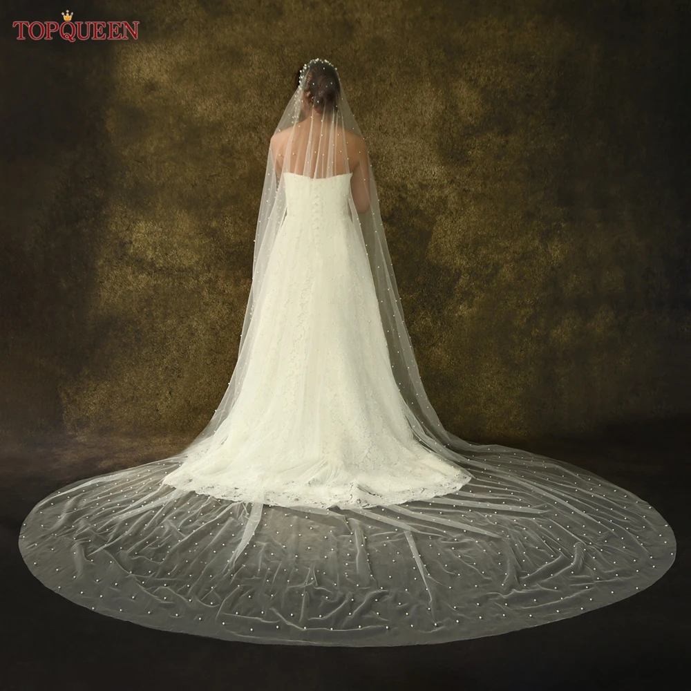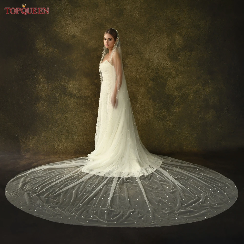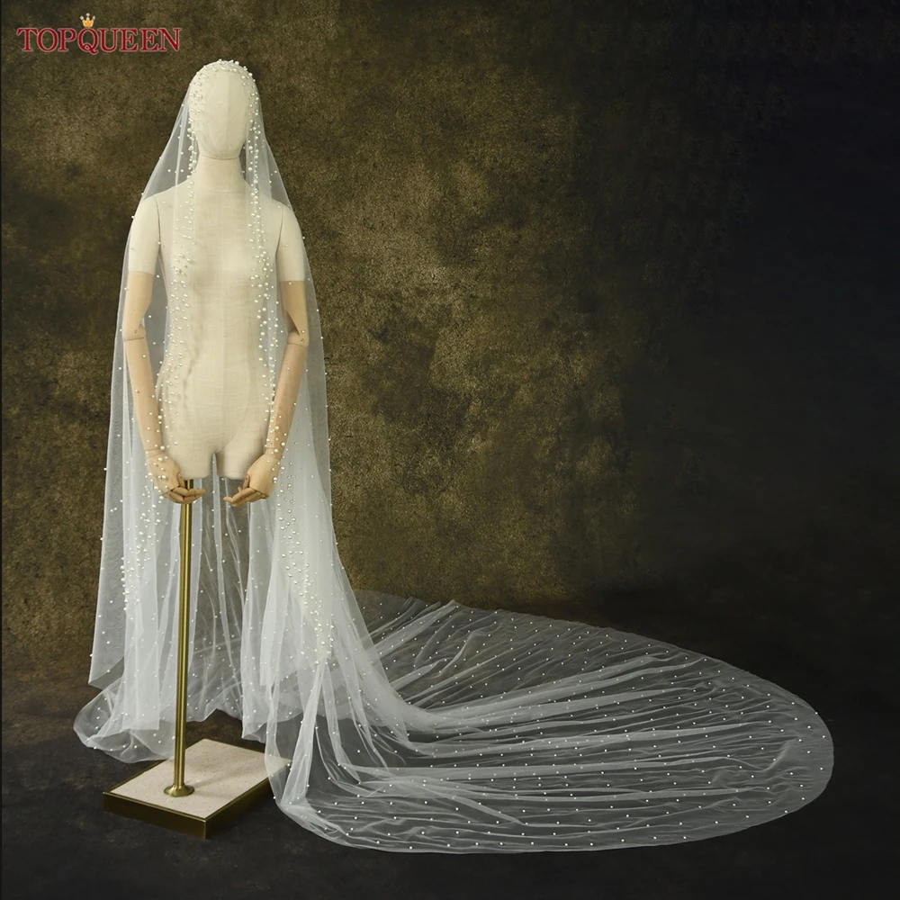 TOPQUEEN V66 Luxury Cathedral Pearl Wedding Veil – Single Layer Long Bridal Veil Without Comb | White or Off-White (150 cm / 200 cm / 300 cm)